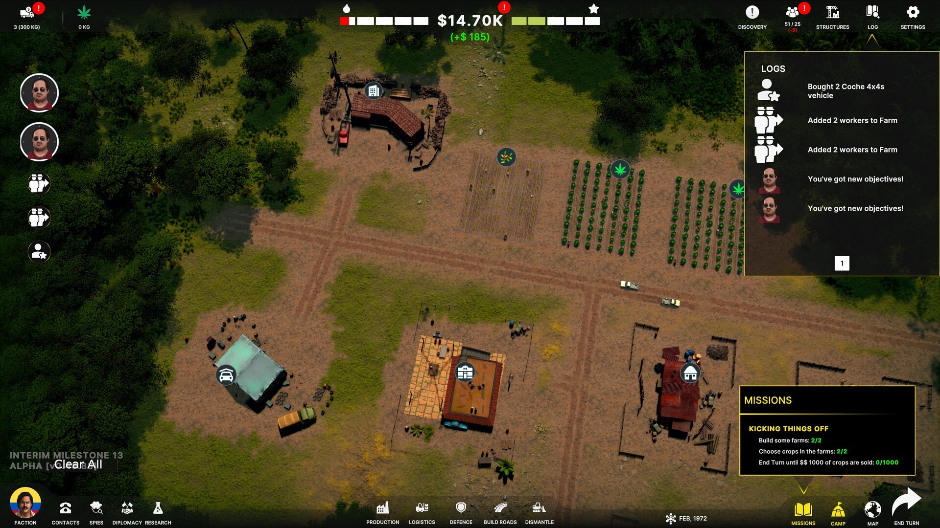 Choose your base from three distinct maps - Colombia, North Korea, or Nigeria. Build your operations including farming, production, packaging, and transport. With money rolling in, you’ll need to fortify your territory with defensive structures, traps, and armed protection to keep rival cartels and law enforcement at bay. Each region offers new powerful figures to work as, utilizing natural resources and navigating the market challenges unique to their burgeoning empire. With efficient supply, you’ll need to grow your territories and meet your customers’ constant demand.